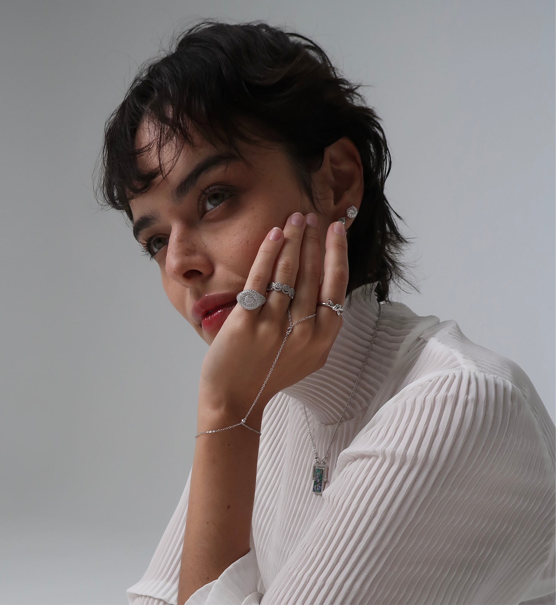 Prata 925 com 18k banho de ouro branco e zircônias.