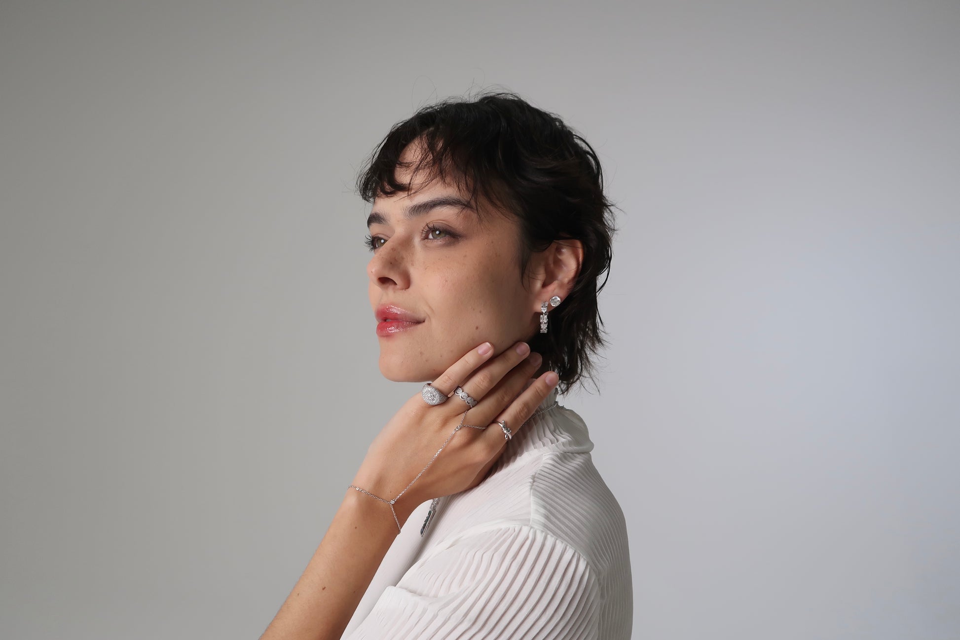 Prata 925 com 18k banho de ouro branco e zircônias.