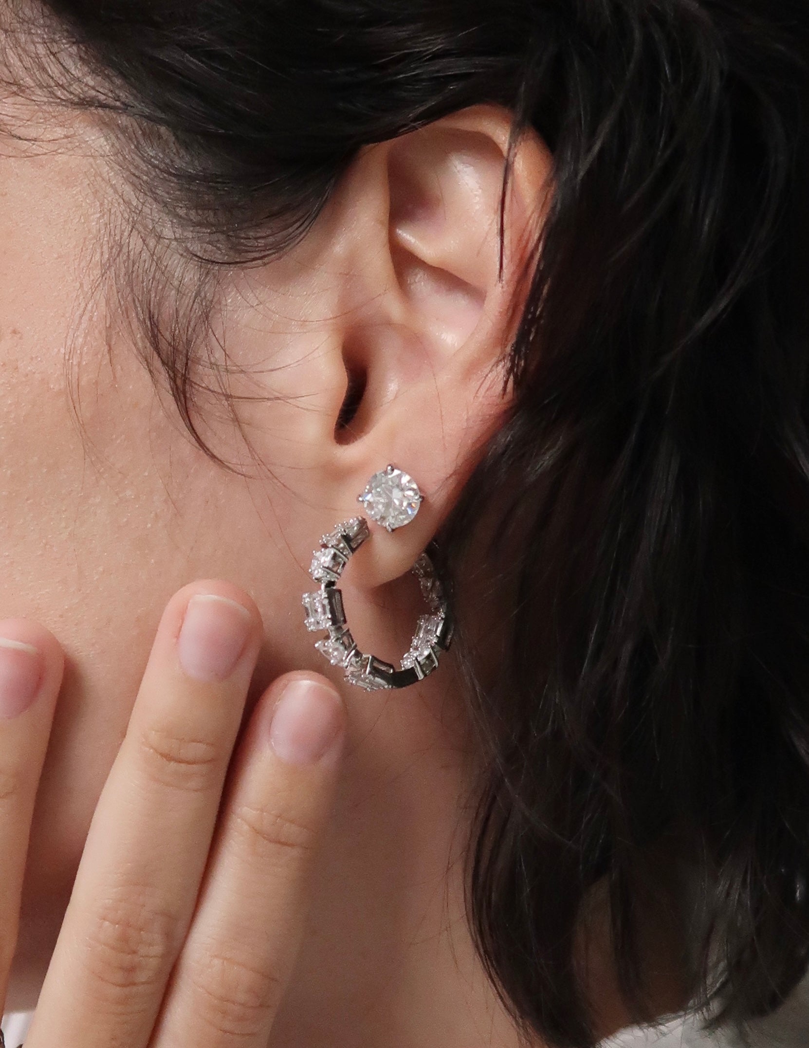Prata 925 com 18k banho de ouro branco e zircônias.