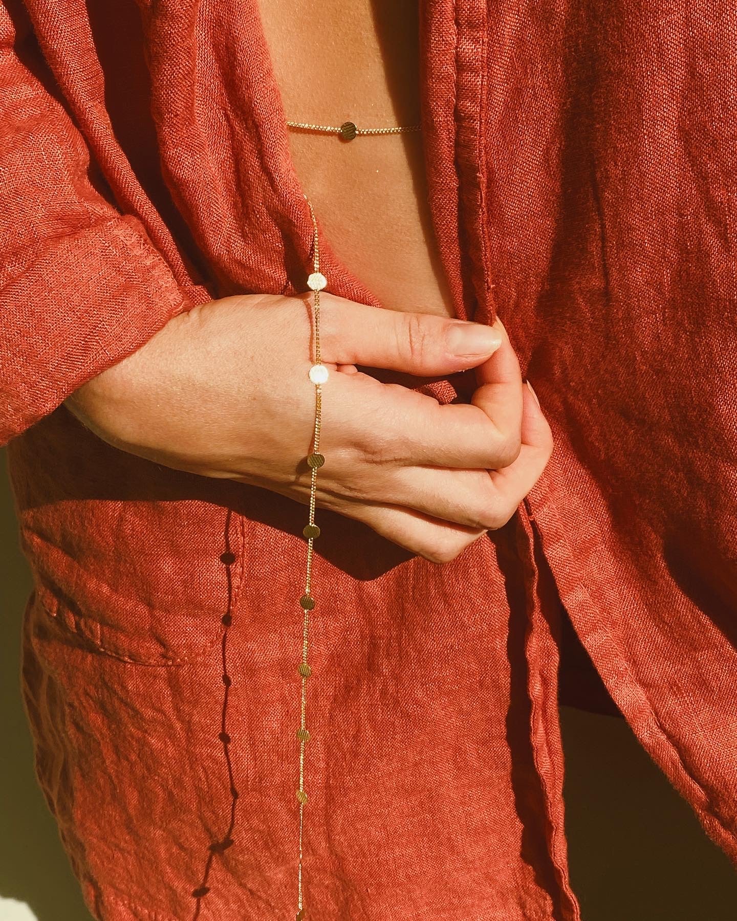Detalhes: Prata 925 com 18k banho de ouro amarelo. Pode ser usado como colar e pulseira também.