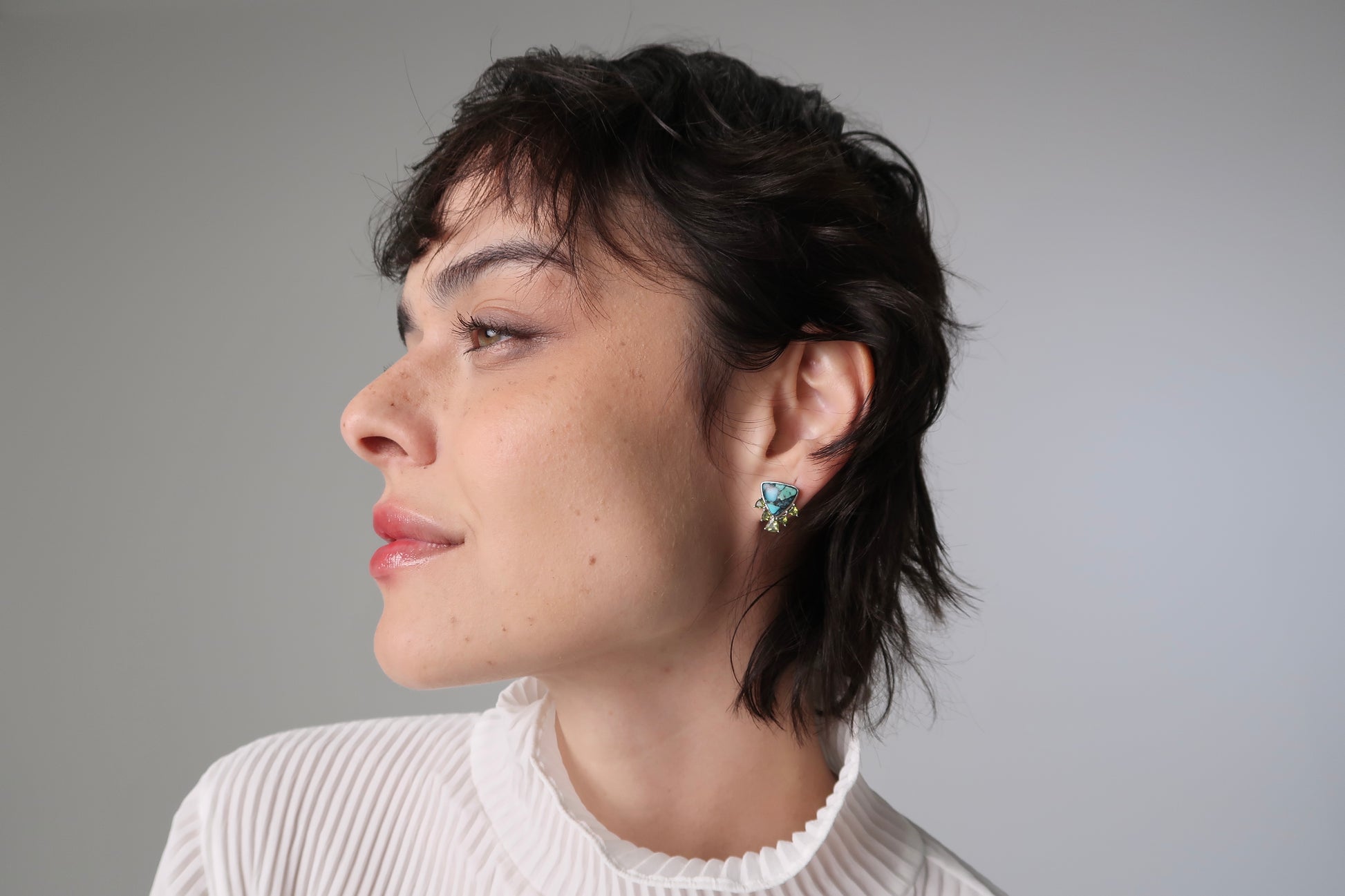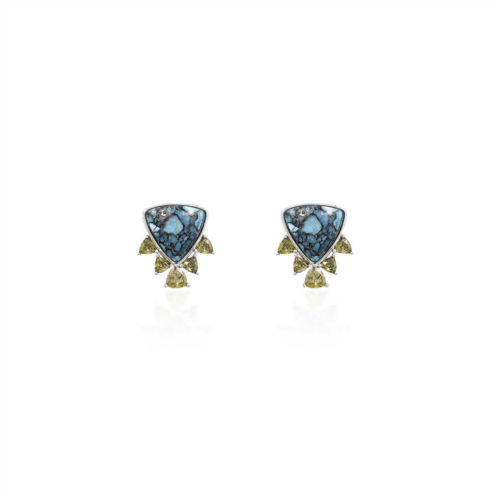 Prata 925 com 18k banho de ouro branco, pedra natural turquesa rajada e espinélio lime green.
