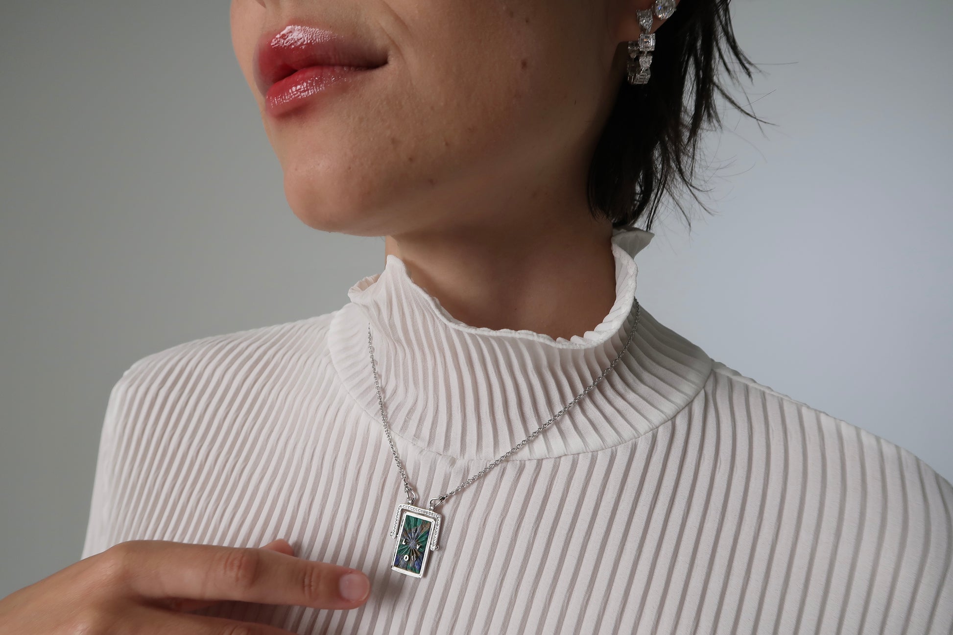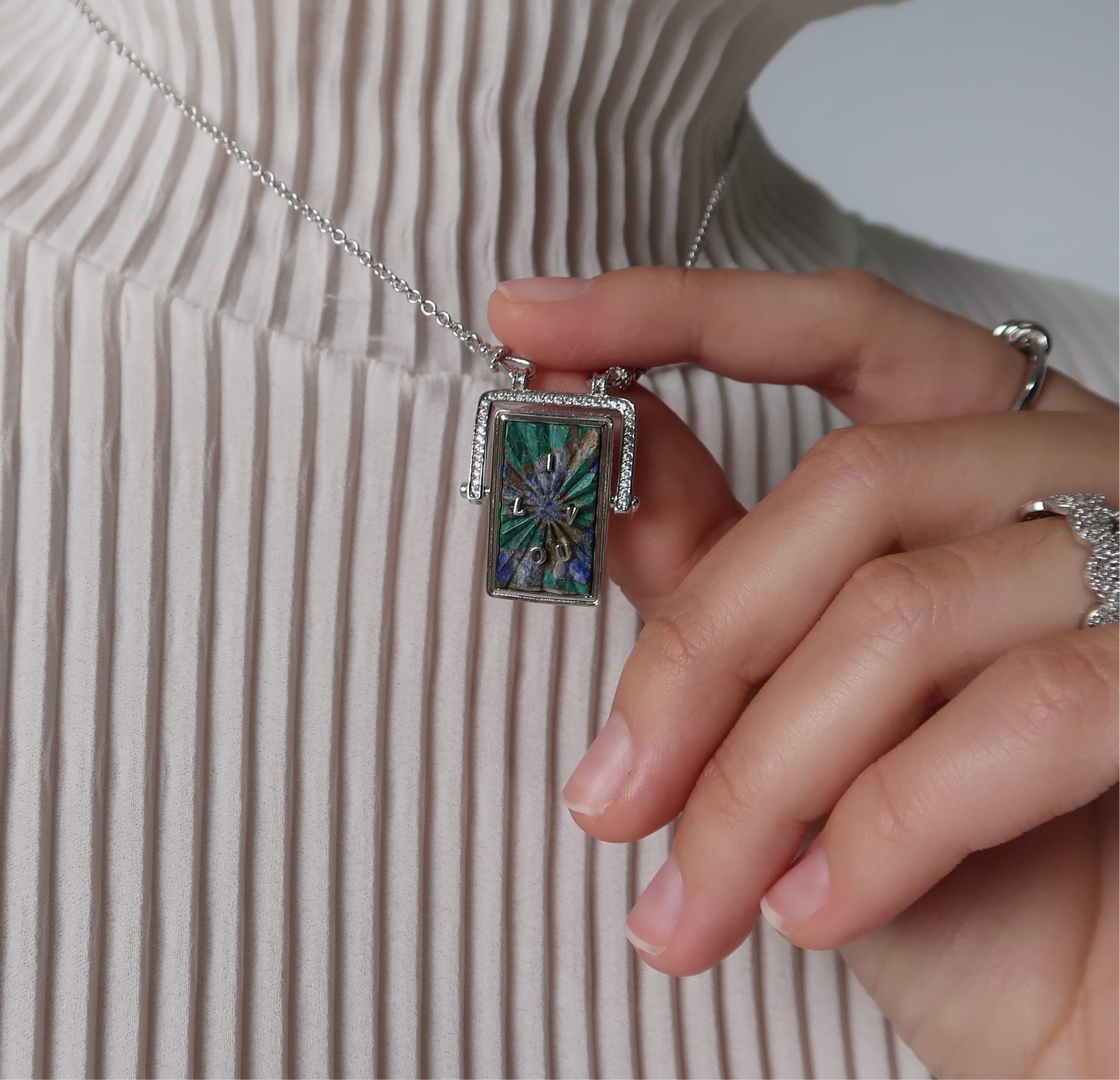 Prata 925 com 18k banho de ouro branco, pedra natural turquesa cooper e zircônias. Tamanho 40cm pescoço + 5cm extensor.