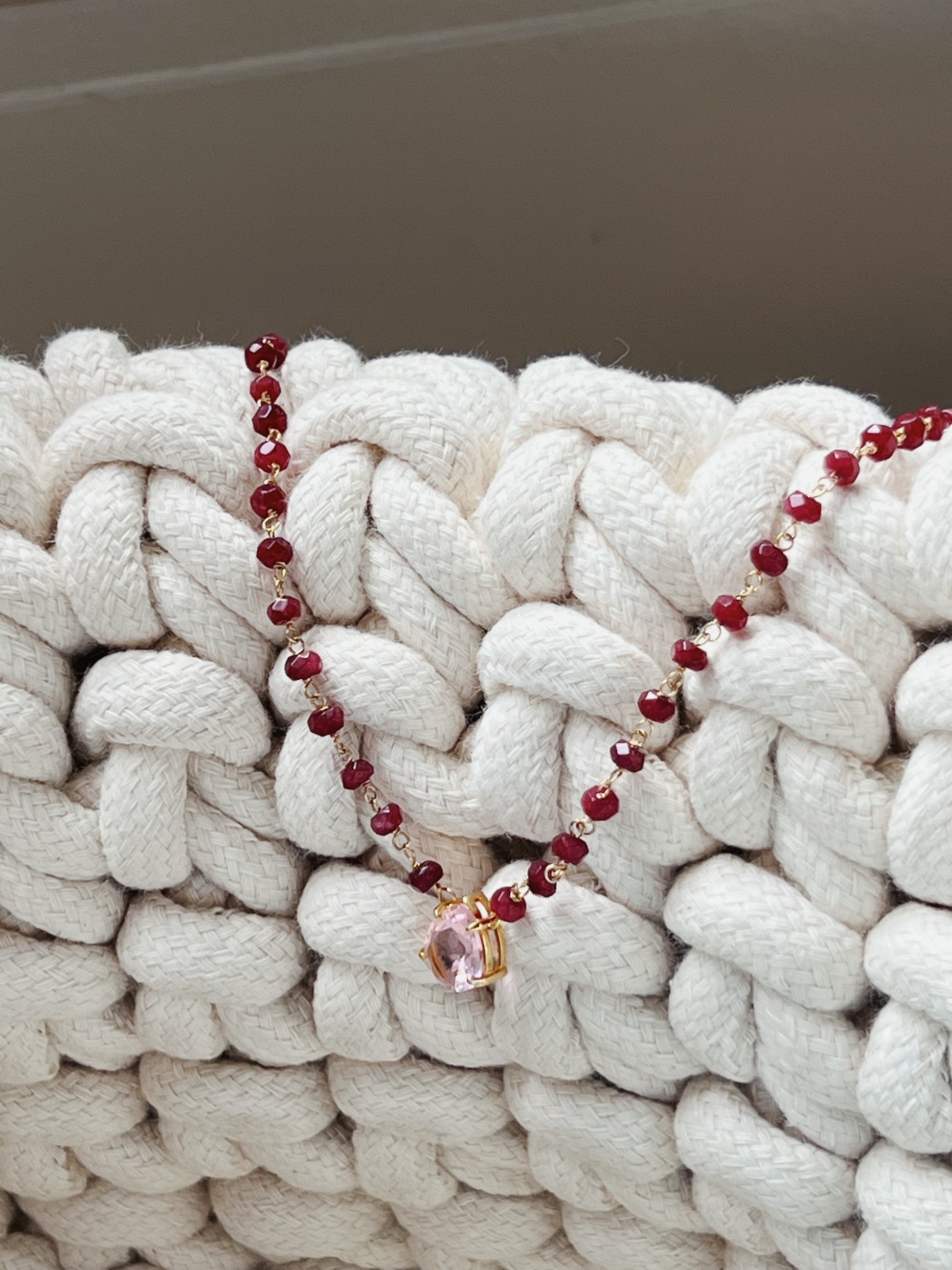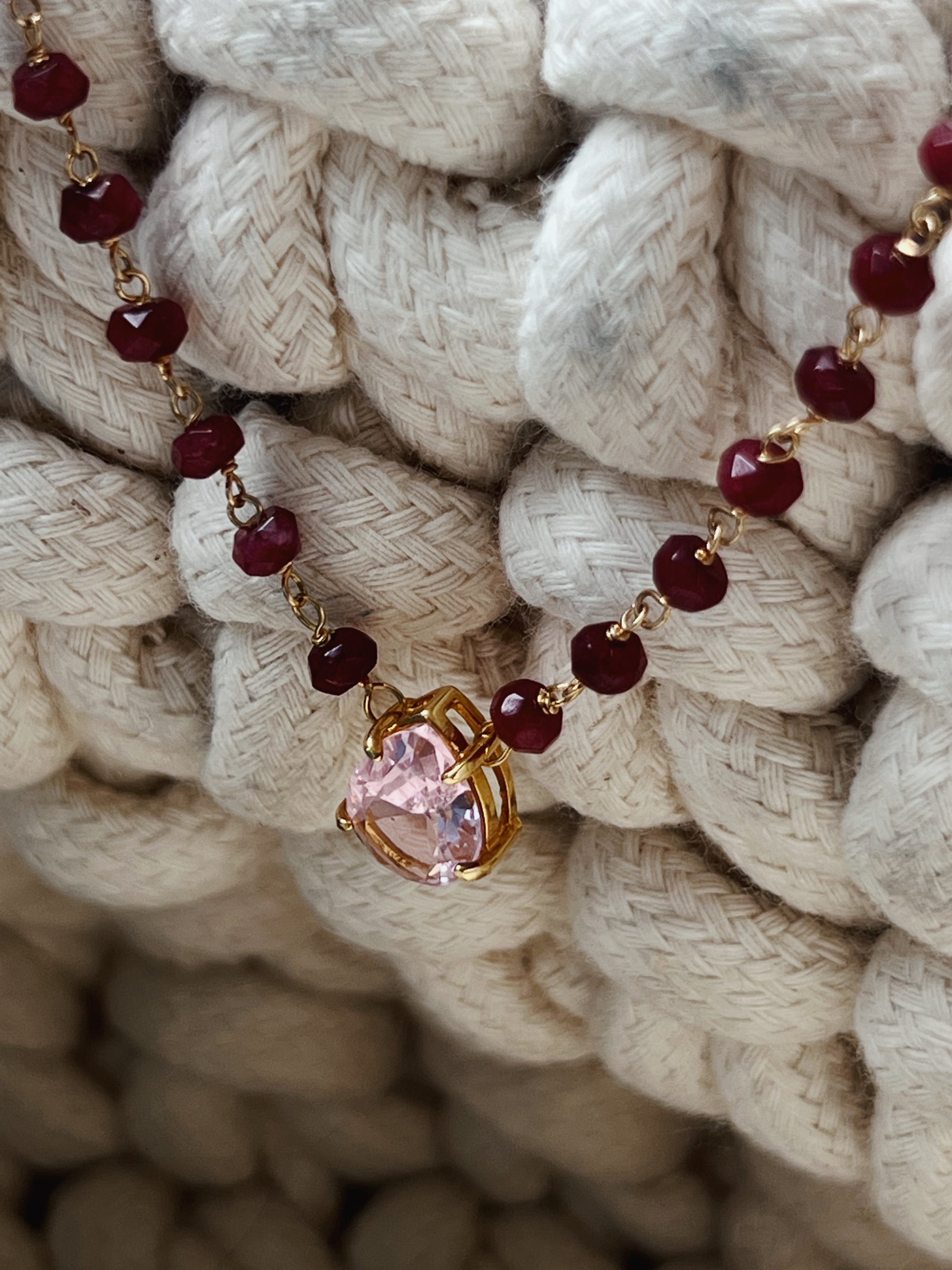 Detalhes: Pedra natural jade rubi e zircônia. Banhado no ouro amarelo 18k. Medida: 20cm com extensor.