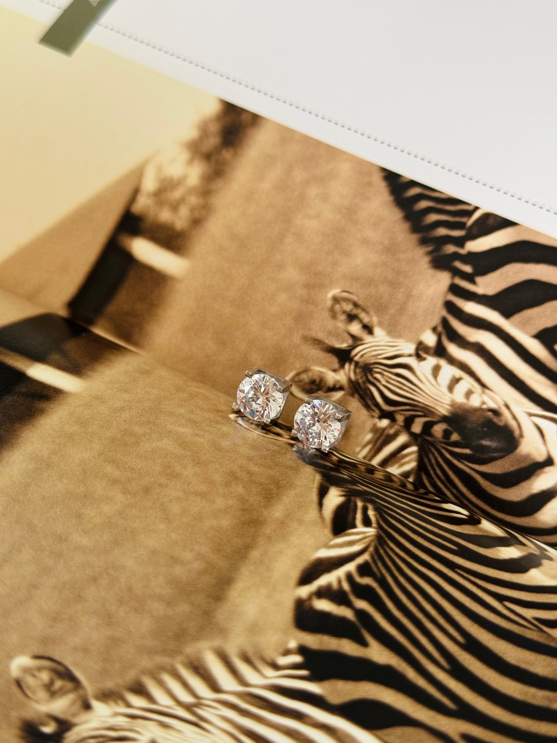 Brinco zircônia 8mm, banhado no ouro branco 18k.