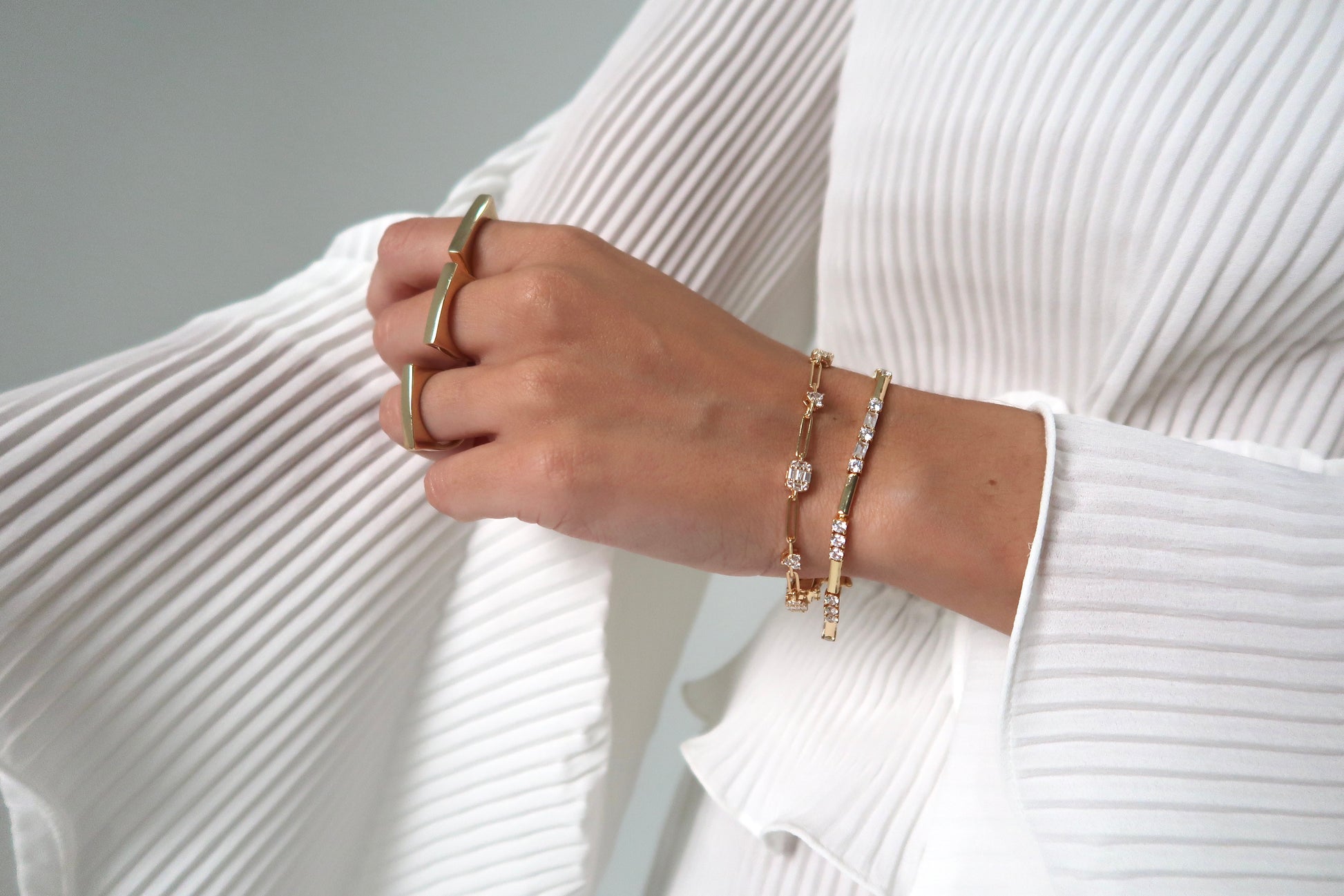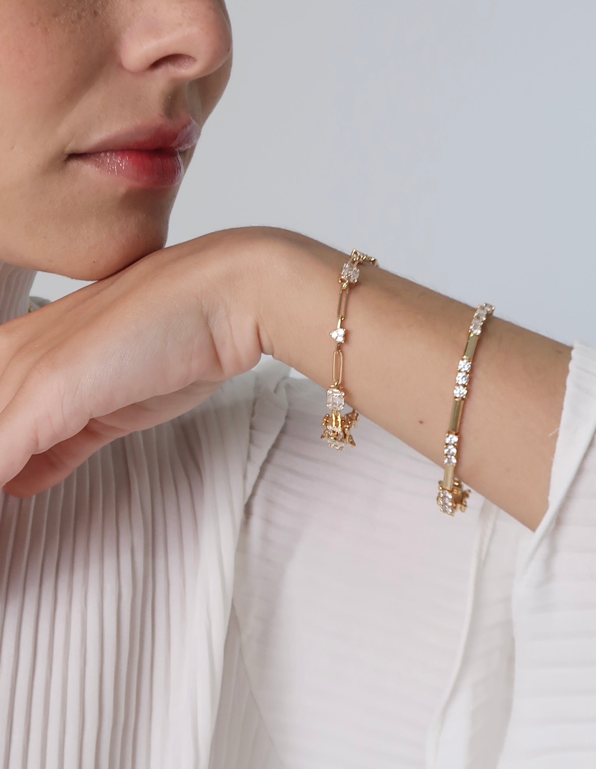 Prata 925 com 18k banho de ouro amarelo e zircônias. Tamanho 17cm.